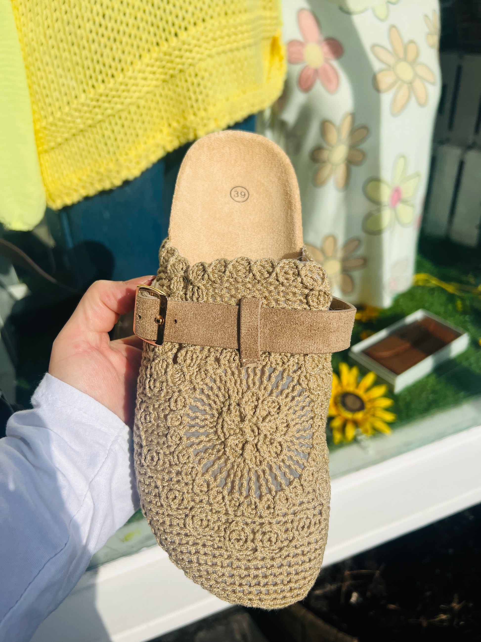 Brooke Mules Cornflower Latte Crochet