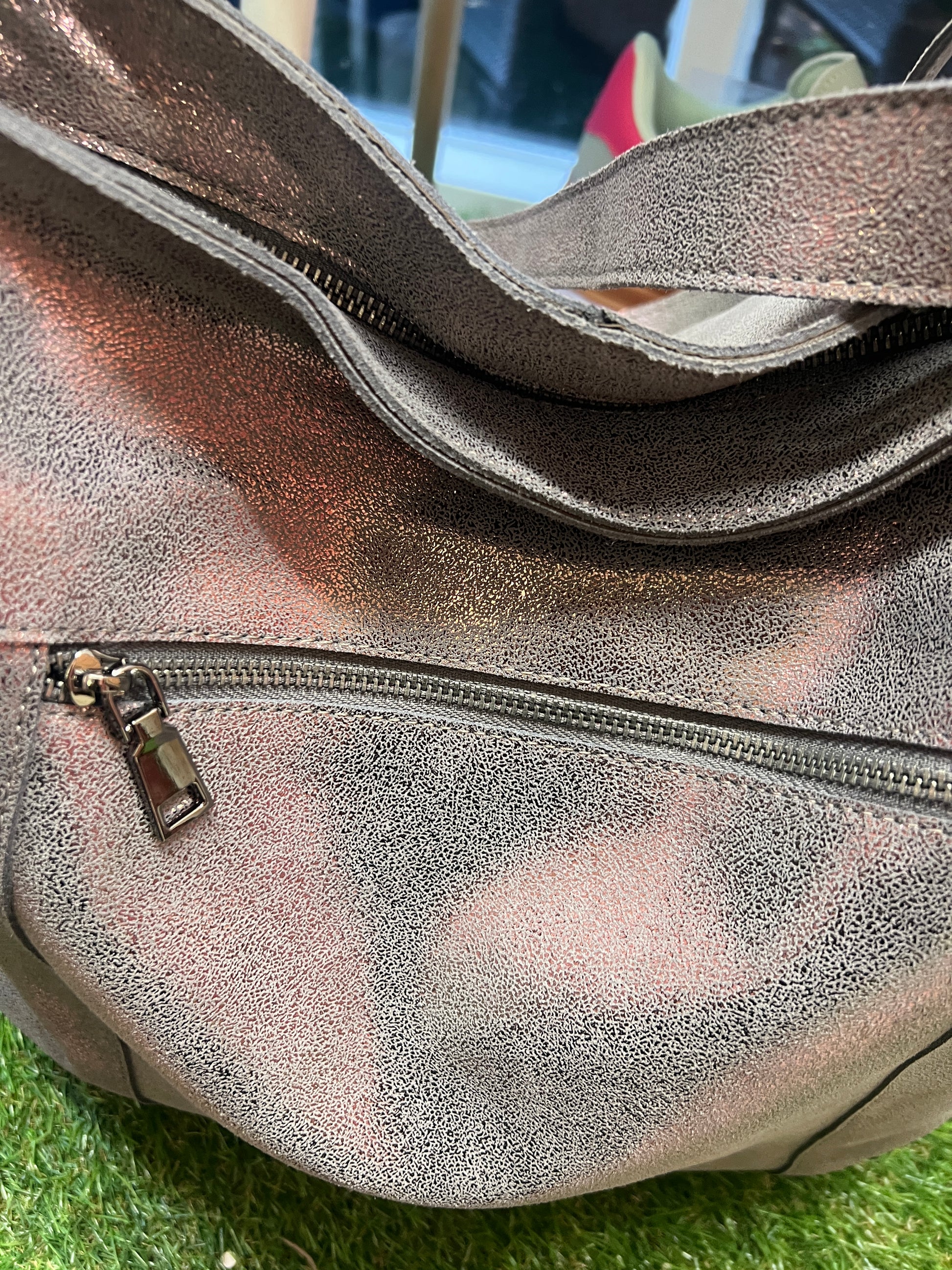 Malissa J Leather Pewter Slouch Bag